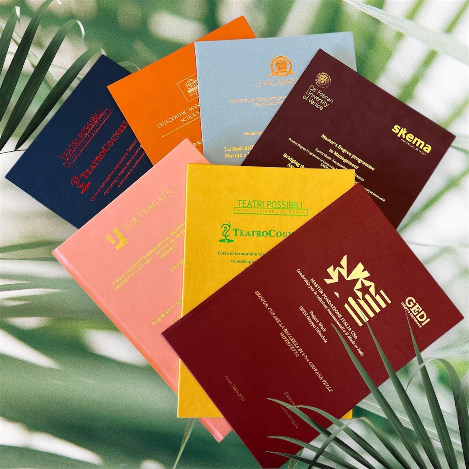 Ora sta a voi scegliere il materiale ed il colore della vostra tesi da rilegare