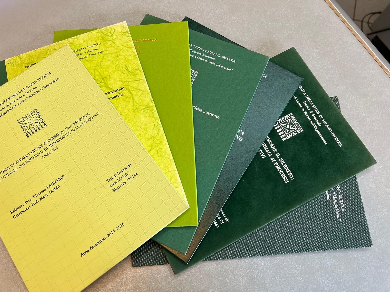 Per quanto riguarda il numero dei volumi da rilegare, il colore o il materiale, non ci sono limitazioni: il numero di volumi è di solito 3 (una per il relatore, una per il correlatore e la tua copia ) più le copie che vorresti eventualmente regalare ad amici e parenti.